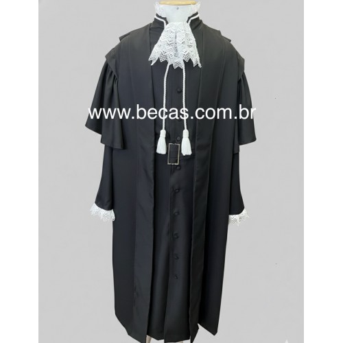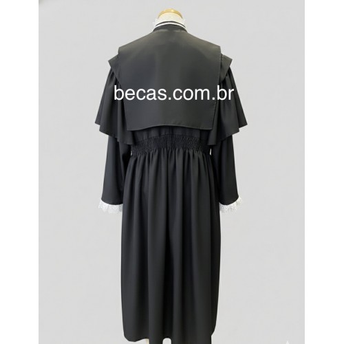 Comprimento até o tornozelo , aproximadamente ( mais comprida que a Beca tradicional).
