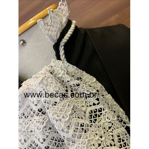 Toga dupla com abotoamento frontal , duas palas frontais soltas , renda Guipir bordada importada , detalhes e acabamento impecáveis.
